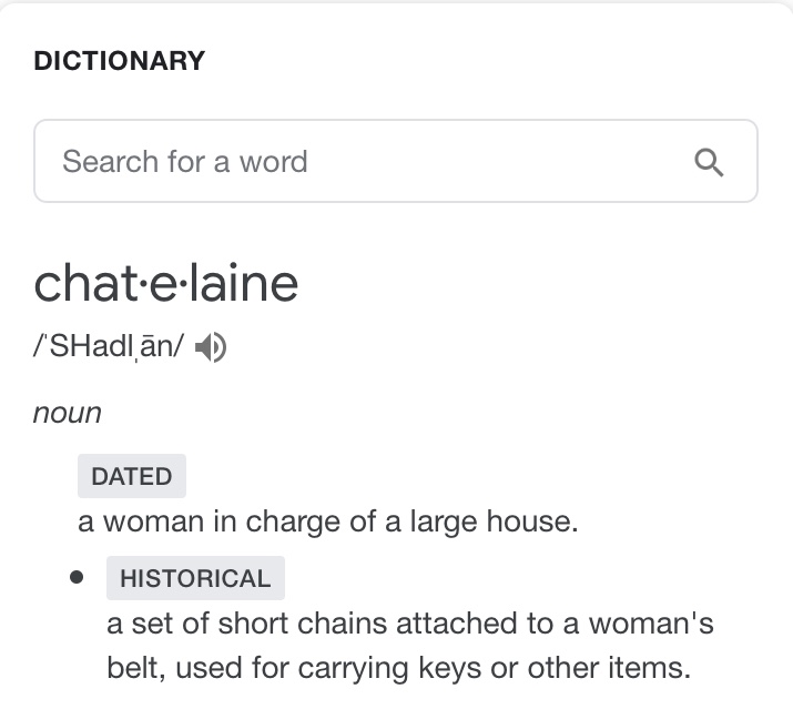 I love a chatelaine. I love that something of beauty was created out of that which was excluded (surprise, surprise), later reluctantly and sparingly doled out, to women. I still don’t have enough of them in my life.