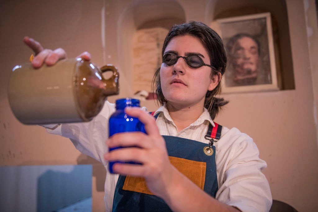 Arts in the Area, Costume History, Frankenstein, HJT Costume Shop, Onstage, Theatre Studies, Uncategorized Borrow…or thief? Posted by Annaliese Baker on October 17, 2019October 10, 2019 Victor “borrows” a bit of mercury from his old professor.Victor—Gillian Mackay Brown; Photo Credit: Greg Lehman Share this: Share on Facebook (Opens in new window) Facebook Share on Pinterest (Opens in new window) Pinterest Like Loading...